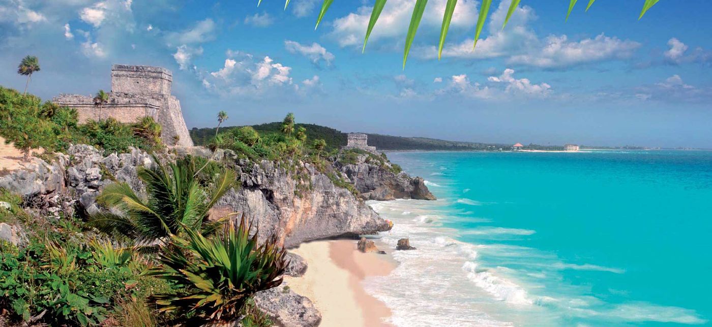 Otra visita imperdible en la costa caribeña de México, es la ciudad de Tulum. Es conocida por sus ruinas bien conservadas de un antiguo puerto maya. El edificio principal es una gran estructura de piedra llamada El Castillo, que se alza en la parte superior de un acantilado rocoso, sobre las playas de arena blanca y el mar turquesa. Cerca de las ruinas, se encuentra el Parque Nacional Tulum, un área costera con mangles y cenotes.